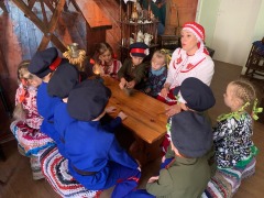 Мало казаком родиться, надо казаками стать!- под таким названием прошла экскурсия в мини-музее "Казачий куренек'' 16 октября для воспитанников подготовительной группы "Речецветик'' накануне праздника дня Отца. Этим увлекательным мероприятием сегодня начался среднесрочный познавательно-творческий проект "У обрядов на Дону множество заветов''. От Елены Ивановны юные казачата узнали, что казаки-отцы сами в старину мастерили мебель: лавки, столы, этажерки, люльки. Дети смогли потрогать старинный рубанок, и попробовать его в деле, примеряясь к коромыслу. С интересом рассмотрели они разные корзины, которые казаки отцы плели из виноградной лозы. Как они делали в старину плетни и сундуки, крынки и утюги, подковы и шкатулки тоже в ходе экскурсии узнали дети и смогли все потрогать руками. С помощью музейной педагогики педагоги стараются пробудить интерес к истории и культуре своего народа. Постепенно формируется у дошкольников чувство сопричастности к своей малой родине, чувство патриотизма в процессе накопления знаний о традициях донского казачества.