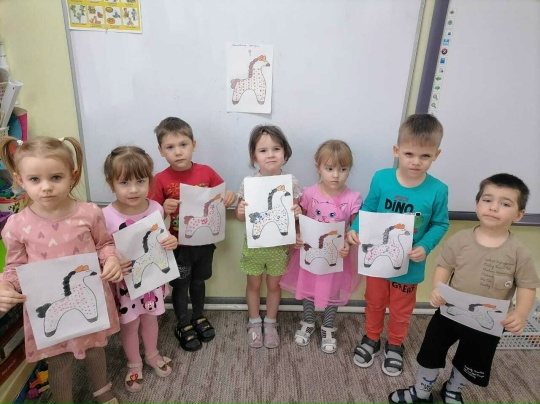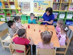 В группе «Пчёлка» прошла тематическая неделя с краткосрочным проектом «Народная игрушка»! Ребята познакомились с народными промыслами и приобщились к традициям русского народа. Они побывали в роли дымковских мастеров, расписав лошадок, и украсили сарафаны матрёшек узорами из геометрических фигур.