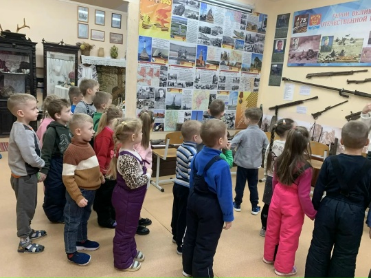 6 февраля в рамках проекта «От нас, не видевших войны» дети из старшей группы «Казачата» и подготовительной группы «Речецветик» детского сада «Золотой ключик» посетили краеведческий музей, созданный на базе МБОУ УДСОШ № 2. Войдя в музей, дети погрузились в другую эпоху, окруженные множеством интересных и незнакомых вещей. Руководитель музея Алла Ивановна Щебуняева рассказала ребятам о том, как наши земляки защищали Родину во время войны, помогали фронту и лечили раненых бойцов. Дети с большим интересом рассматривали фотопортреты героев войны, ордена, медали, посуду солдат и даже гранаты с оружием! Экспонаты вызвали у них восторг и восхищение. Особое внимание детей привлекли предметы регионального компонента – казачества! Старинная утварь, одежда и предметы обихода казачьего быта. Воспитанники детского сада были желанными гостями в музее, и каждому ребенку дали ответы на все интересующие их вопросы.
