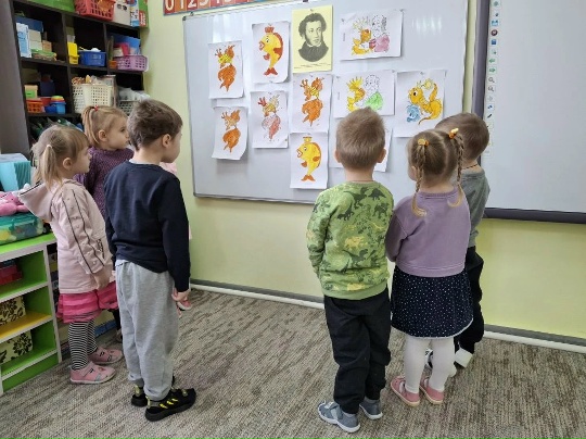 В средней группе «Пчелка» прошел тематический день, посвященный памяти А.С. Пушкина! Воспитанники познакомились с творчеством великого поэта, автора любимых сказок. Дети рассматривали иллюстрации, собирали сказки из кубиков, раскрашивали раскраски к «Сказке о рыбаке и рыбке» и играли в настольный театр! Сказки, стихи и поэмы Пушкина учат нас чувствовать красоту слова, мыслить и мечтать. Его память живет в каждом обращении к родному языку и культуре.