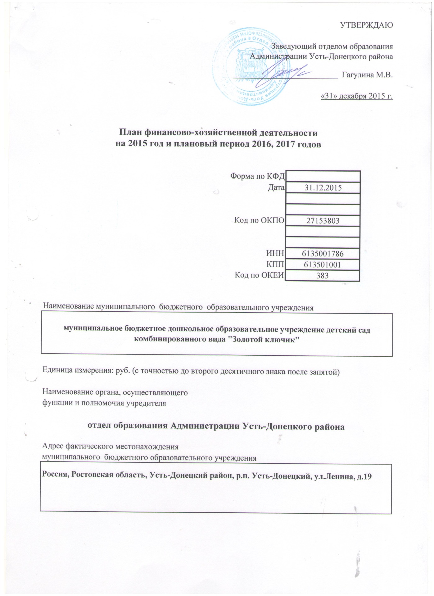 План ФХД на 2015г и 2016, 2017годов смотреть