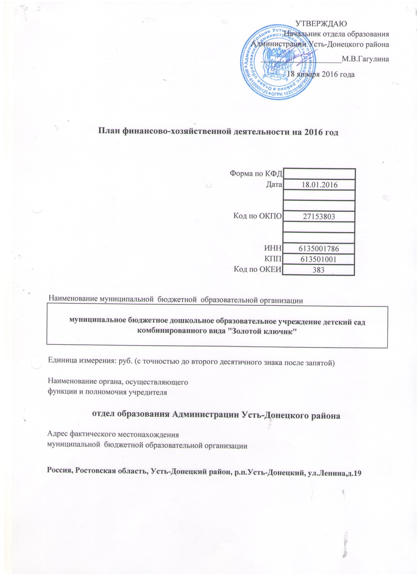 ПЛАН ФИНАНСОВО-ХОЗЯЙСТВЕННОЙ ДЕЯТЕЛЬНОСТИ на 2017год